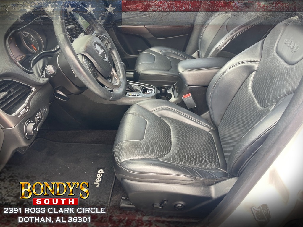 2019 Jeep Cherokee Limited 1-Year SiriusXM Guardian Trial, 10 Speakers, 3.734 Axle Ratio, 4-Wheel Disc Brakes, 4G LTE Wi-Fi Hot Spot, 5-Year SiriusXM Traffic Service, 5-Year SiriusXM Travel Link Service, 8.4” Touchscreen Display, ABS brakes, Air Conditioning, Alloy wheels, AMFM radio: SiriusXM, Anti-whiplash front head restraints, Apple CarPlay, Apple CarPlayAndroid Auto, Audio memory, Auto-dimming Rear-View mirror, Automatic temperature control, Auxiliary Transmission Oil Cooler, Brake assist, Bumpers: body-color, Carpeted Cargo Area Trim Panels, Compass, Delay-off headlights, Driver door bin, Driver vanity mirror, Dual front impact airbags, Dual front side impact airbags, Electronic Stability Control, Exterior Mirrors Courtesy Lamps, Exterior Mirrors wSupplemental Signals, For Details Visit DriveUconnect.com, ForeAft Adjusting 2nd Row Seat, Four wheel independent suspension, Front anti-roll bar, Front Bucket Seats, Front Center Armrest, Front dual zone AC, Front fog lights, Front reading lights, Fully automatic headlights, Garage door transmitter, Google Android Auto, GPS Antenna Input, GPS Navigation, Hands-Free Power Liftgate, HD Radio, Heated door mirrors, Heated front seats, Heated steering wheel, Illuminated entry, Integrated Voice Command wBluetooth, Knee airbag, Leather Shift Knob, Low tire pressure warning, Luxury Group, Memory seat, Normal Duty Suspension, Occupant sensing airbag, Outside temperature display, Overhead airbag, Overhead console, Panic alarm, ParkView Rear Back-Up Camera, Passenger door bin, Passenger vanity mirror, Power door mirrors, Power driver seat, Power Liftgate, Power passenger seat, Power steering, Power windows, Premium Leather Trimmed Bucket Seats, Quick Order Package 2YG, Radio data system, Radio: Uconnect 4 w8.4” Display, Radio: Uconnect 4C Nav w8.4” Display, Rear anti-roll bar, Rear reading lights, Rear seat center armrest, Rear side impact airbag, Rear window defroster, Rear window wiper, Remote keyless entry, Roof rack: rails only, Security system, SiriusXM Satellite Radio, SiriusXM Traffic Plus, SiriusXM Travel Link, Speed control, Speed-sensing steering, Split folding rear seat, Spoiler, Steering wheel mounted audio controls, Stop-Start Multiple VSM System, Tachometer, Telescoping steering wheel, Tilt steering wheel, Tonneau Cover, Traction control, Trip computer, Turn signal indicator mirrors, USB Host Flip, Variably intermittent wipers, Ventilated Front Seats, Voltmeter, Wheels: 18” x 7” PolishedPainted Aluminum. Bright White Clearcoat FWD