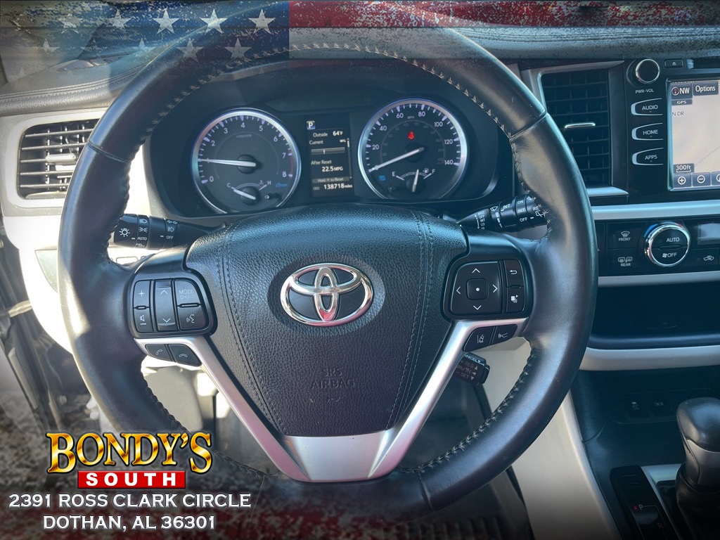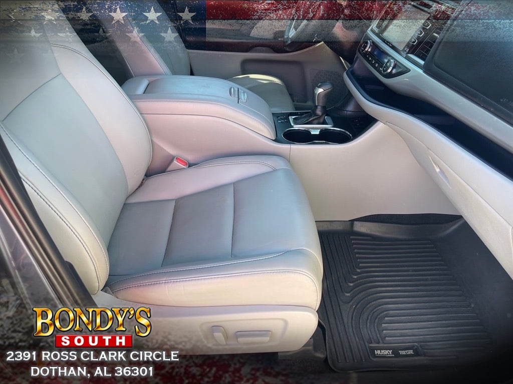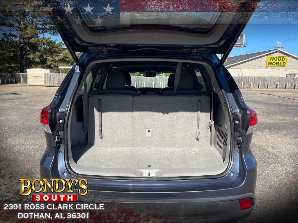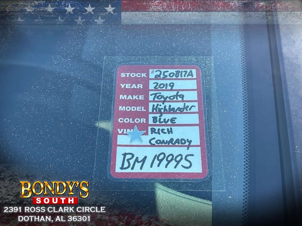 2019 Toyota Highlander 3.003 Axle Ratio, 3rd row seats: split-bench, 4-Wheel Disc Brakes, ABS brakes, Air Conditioning, Alloy wheels, Auto High-beam Headlights, Brake assist, Bumpers: body-color, CD player, Delay-off headlights, Driver door bin, Driver vanity mirror, Dual front impact airbags, Dual front side impact airbags, Electronic Stability Control, Exterior Parking Camera Rear, Four wheel independent suspension, Front anti-roll bar, Front Bucket Seats, Front Center Armrest, Front reading lights, Fully automatic headlights, Heated door mirrors, Illuminated entry, Knee airbag, Low tire pressure warning, Occupant sensing airbag, Outside temperature display, Overhead airbag, Overhead console, Panic alarm, Passenger door bin, Passenger vanity mirror, Power door mirrors, Power steering, Power windows, Rear air conditioning, Rear anti-roll bar, Rear reading lights, Rear window defroster, Rear window wiper, Reclining 3rd row seat, Remote keyless entry, Speed control, Speed-sensing steering, Split folding rear seat, Spoiler, Steering wheel mounted audio controls, Tachometer, Telescoping steering wheel, Tilt steering wheel, Traction control, Trip computer, Turn signal indicator mirrors, Variably intermittent wipers. Shoreline Blue Pearl FWD